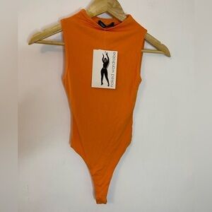 New with tags naked wardrobe super soft orange thong bodysuit with mock neck. Size XS. Great layering and closet essential piece. (G)