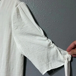 NWT Naked Zebra Off White Low Back Dress Lined Sz SM Soft & Silky Tie Sleeves Sexy. Rehearsal dinner for the BRIDE. Wedding guest, cocktail party. Length from shoulder to hem 34”. Sleeve to shoulder seam 13”. Armpit to armpit 18 inches laying flat.