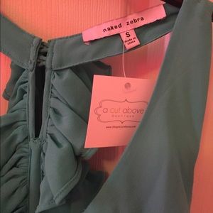 NWT Naked Zebra Ruffle Racerback Blouse. Never worn. Bluish green color. Very cute & flattering. I own this blouse in multiple colors.