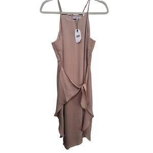 NWT Naked Zebra Women's Tan Tie Waist Sleeveless Wrap Dress Size Medium
