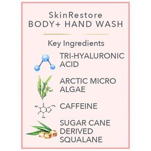 What is it: Ultra-foaming, concentrated hydration-rich body cleanser infused with tri-hyaluronic acid, caffeine, squalene and micro algae and other key ingredients that help provide softer-looking skin.