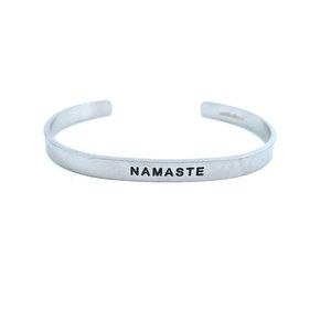 Beautiful bracelet in a silver matte tone engraved with the word "Namaste".