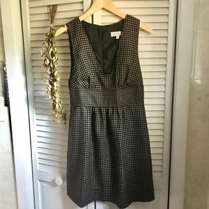 NWT=New with tags, and never before worn...woot woot!! This is an absolutely gorgeous and extremely well made heavy winter dress with a deep rounded V-neck, a tweed squares pattern, empire style waist, and a peep back slit. A great piece for festive holiday parties or corporate functions when its really cold out.