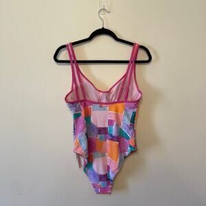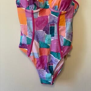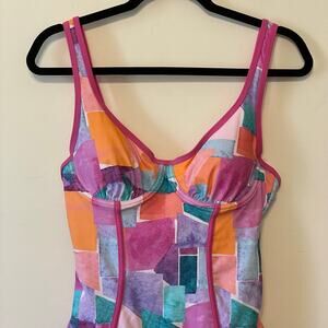 Details: swimsuit one piece geometric New with tags padded bra corset boning abstract scoop neck