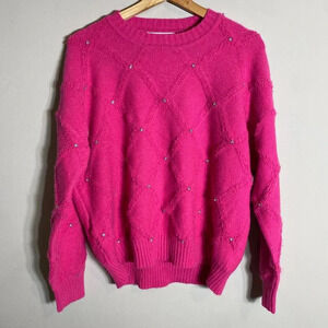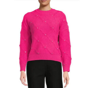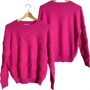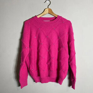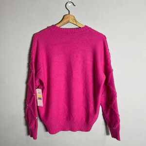 NWT Nanette Lepore Bedazzled Cable Knit Crewneck Pullover Sweater Women's M Pink