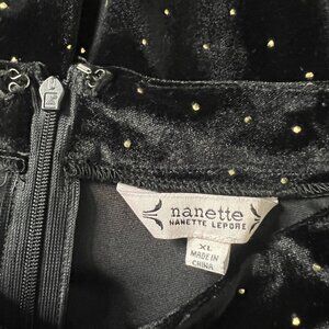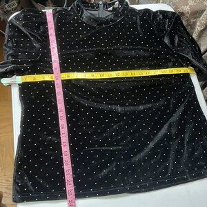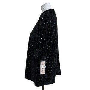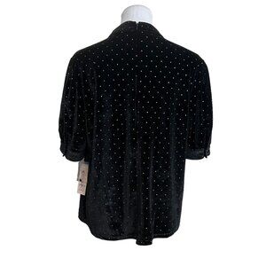 NWT Nanette Lepore Black Velvet Blouse Gold Polka Dots Mockneck Shirt XL NEW