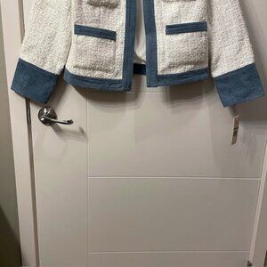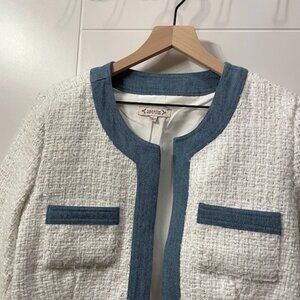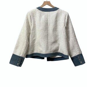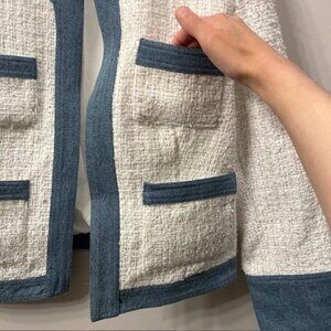 NWT Nanette Lepore Boucle Tweed Denim Trim Open Front Blazer Jacket Large