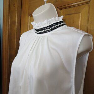 NWT Nanette Lepore "Cannoli" Ivory Top Sleeveless High Collar Beading Ruffle XL