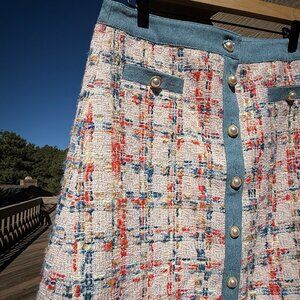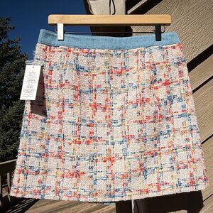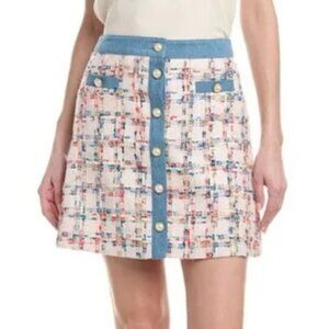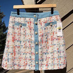 NWT Nanette Lepore Denim & Multicolor Tweed Button-Down Mini Shirt