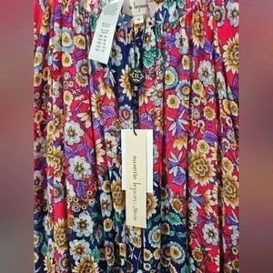 NWT Nanette Lepore Desert Diamond Off-the-Shoulder Cover Up Dress, Size Medium. Has a purple tie at the waist to cinch. This colorful piece will look supercute at your next pool party. Pair with wedges for a daytime event. Perfect for summer or vacation!