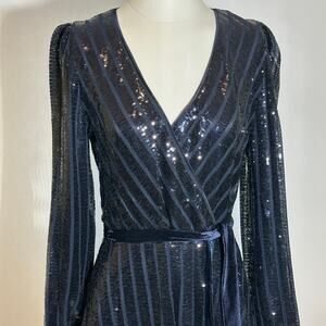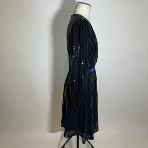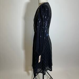 NWT Nanette Lepore Navy Blue Sequin Belted Cocktail Party Dress Womens Size 8