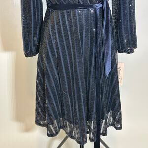 NWT Nanette Lepore Navy Blue Sequin Belted Cocktail Party Dress
