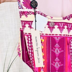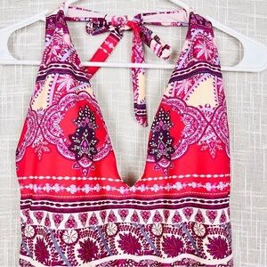 NWT Nanette Lepore Poppy Red & Purple Print Plunge Halter One-Piece Swimsuit