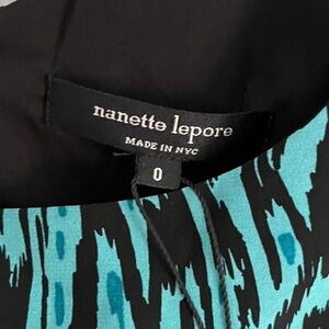 Nanette Lepore women’s silk Chloe dress in blue and black. Size 0.