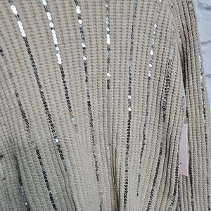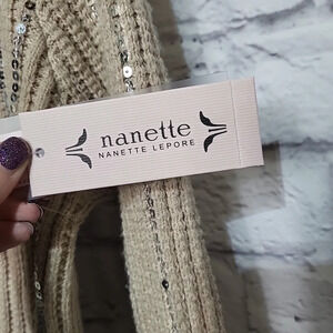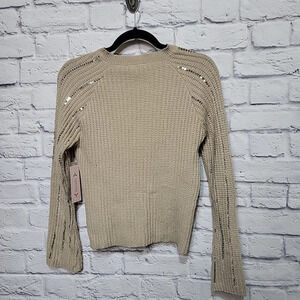 NWT Nanette Lepore Tan Crop Sweater With Silver Sequins Medium
