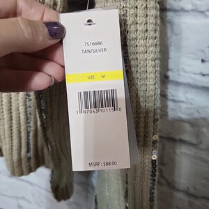 NWT Nanette Lepore Tan Short / Crop Sweater With Silver Sequins Medium