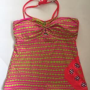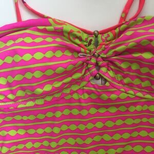 New without tags, fun punk and lime green pattern, fully lined, removable pads and side wires for extra support, 11”-12” length measured from right under the bust to the bottom and 16” measured including the cups/ bust area. 13” wide across the narrowest part eight under the bust