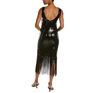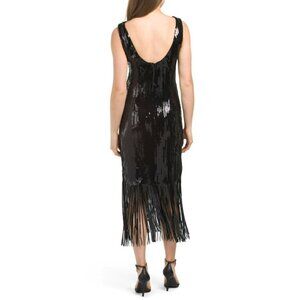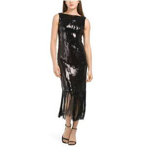 NWT Nanette Lepore Women's Boat Neck Sequin Fringe Hem Maxi Dress