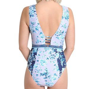 NWT Nanette Lepore Women's Lavender Trails Priya Plunge One Piece Swimsuit 10