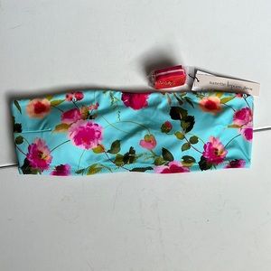 NWT Nanette Lepore floral bikini top. Size is 12 with removable padded cups and strap. Measurements in pictures.