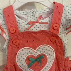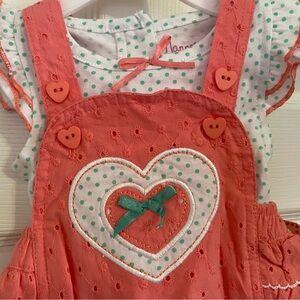 Adorable coral colored bubble romper with ruffle butt