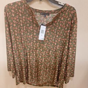 NWT Napa Valley Women’s Medium Olive/Rust Floral 3/4 Sleeve Pleated Blouse