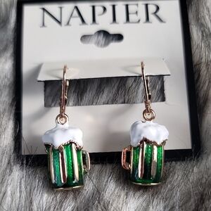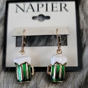Celebrate in style with these Napier green and gold beer mug earrings. Perfect for adding a fun touch to any outfit.