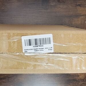 NWT napkin and utensil holder. Never assembled. Comes with screws necessary to assemble. Has slots for cups, napkins and 2 utensil slots. Light wood stain.