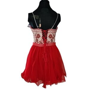 NWT Narianna Prom Illusion Embellished Red Mini Dress Jr XL