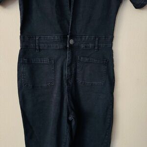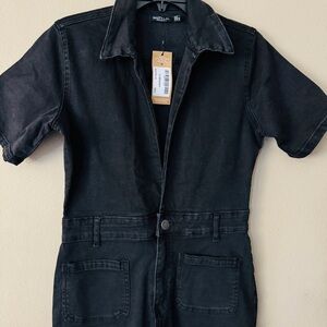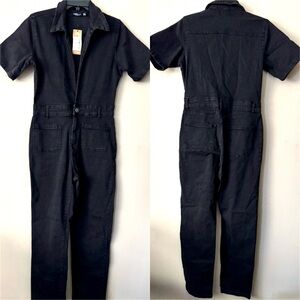 NWT Nasty Gal Collection Black Deep V Neck Denim Boilersuit Jumpsuit Size 8