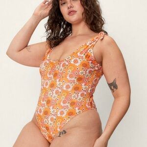NWT Nasty Gal Floral Tie. One Piece Swimsuit 24 Orange Floral Daisy