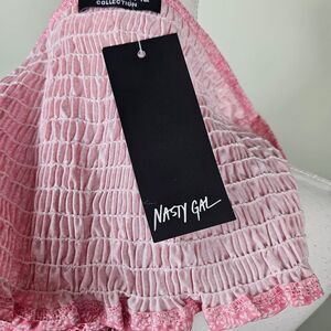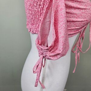 NWT Nasty Gal Floral Ruched Crop Top. Pink Med
