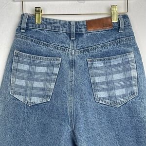 NWT Nasty Gal High Rise Check Patchwork Straight Leg Jeans w/ stretch, Size 2