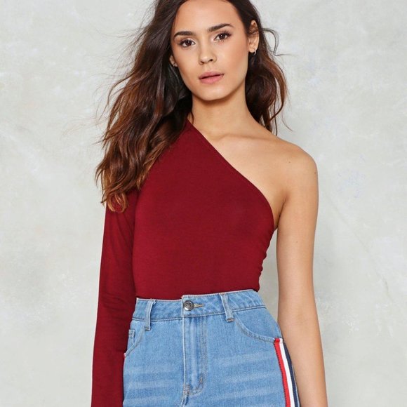 NWT Nasty Gal Maroon One-Shoulder Top Size 10 US 14 UK