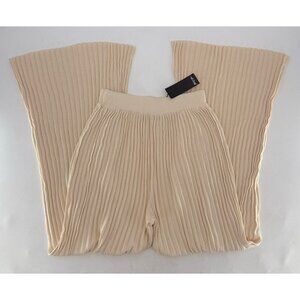 NWT Nasty Gal Ostmeal Knitted Pleated Wide Leg Trousers Elastic High Waist Sz 4
