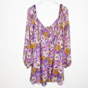 NWT Nasty Gal Plus Size Lilac Floral Lace Up Skater Dress 16