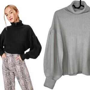 NWT Nasty Gal Roll Neck Puff Sleeve Deep Cuff Jumper in Silver Grey Size Medium