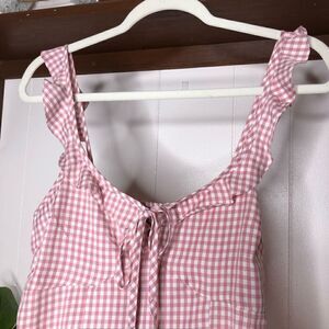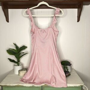 NWT Nasty Gal Womens Gingham Check Frill Neck Ruffle Mini A-Line Sun Dress Pink Size 4