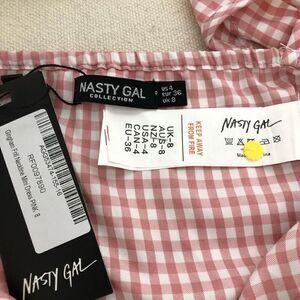 NWT Nasty Gal Womens Gingham Check Frill Neck Ruffle Mini A-Line Dress Pink Sz 4