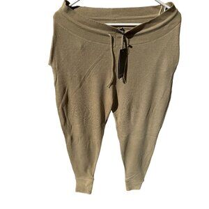 NWT Nasty Gal Womens Ribbed Knit Joggers With Drawstring Waist Beige Size L