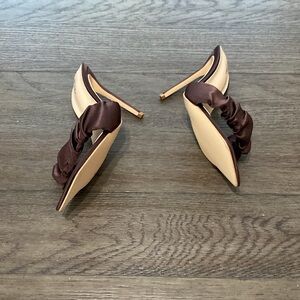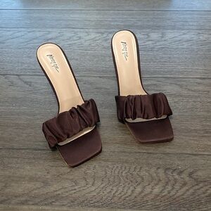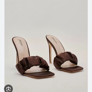 NWT Nasty Gal Womens Satin Ruched Front Heeled Mules | Brown | Size 40/9