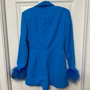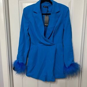 NWT Nasty Gal feather sleeve blazer romper blue 4