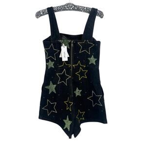 NWT Nasty Gal rhinestone star denim romper sz 4