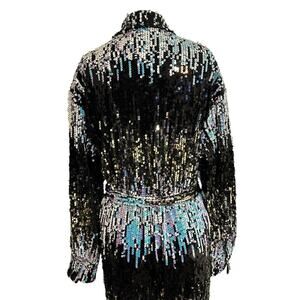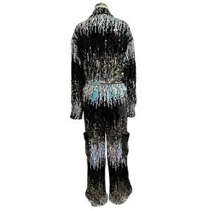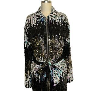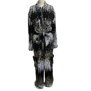 Black/Gold/Silver/Pink/Turquoise. Shine like a diamond. Our sequin boilersuit is a glitzy yet super comfortable evening look. Ombre Sequin Effect, Zip Up Boilersuit, Relaxed Fit, detachable belt, 100% Polyester. MSRP $314.