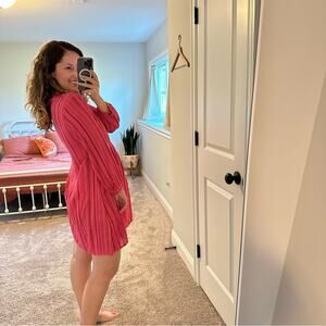 I'm so in love with this super cute brand new with tags designer Natalie Martin pink striped long sleeve mini dress