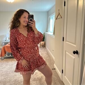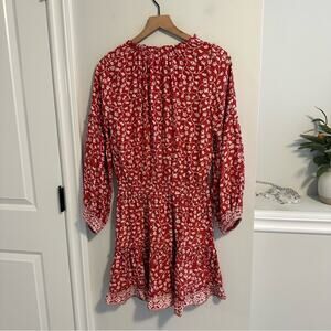 I absolutely adore this gorgeous brand new with tags designer Tuckernuck Natalie Martin red pure silk floral printed boho long sleeve tassel mini dress