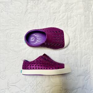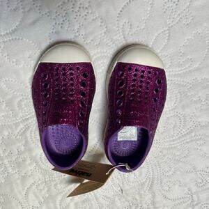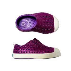 Native Jefferson Bling slip on water friendly sneakers in starfish purple glitter and shell white. Size 4 baby