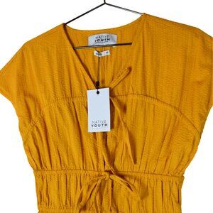 NWT Native Youth Orange Tie Front Detail Seersucker Midi Dress Sz XS Prairie