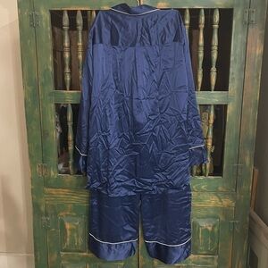 Top: notch collar, button-up front, piping detail, long sleeves, side slits