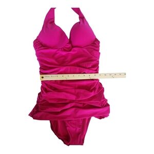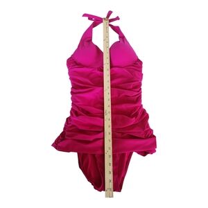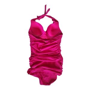 NWT Natori Fuchsia Halter One-Piece Swimsuit Size 8 B/C Cup Ruched